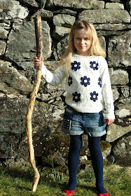 Flower print jumper in navy and ecru, priced at £9-10 for ages 5-13 years. Great teamed with denim.
